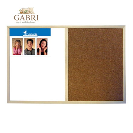 Kombinovaná tabuľa, čo znamená, že poľka je magnetická a poľka je korková. Rozmery tabule sú 40 x 60 cm.