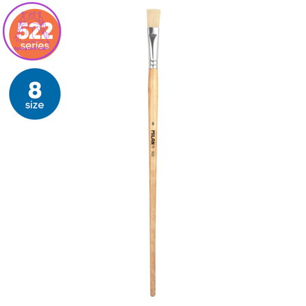 Plochý štetec MILAN 522 s dlhou drevenou rukoväťou. Prírodne zalakovaná povrchová úprava a hliníková dutinka. Zloženie: prírodná štetina ošípaných Chungking. Vhodný na maľovanie olejom a akrylom. Priemer štetín: 13,5 mm. Dĺžka štetín: 23,8 mm. Dĺžka štetca: 320 mm.