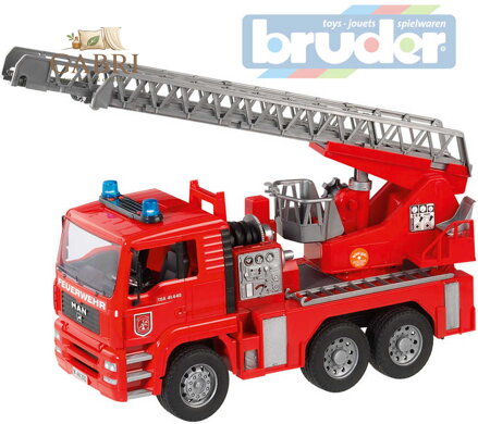 každý malý požárník zamiluje. Model dokonale kopíruje originální hasičské auto MAN a nechybí mu spousta reálných prvků, jako je výsuvný žebřík se záchranou korbou, plně funkční vodní stříkačka či